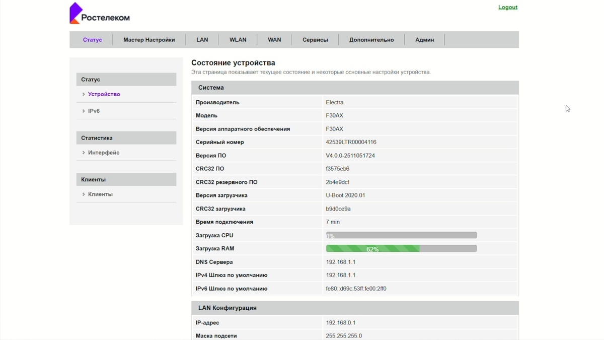 Первой моделью серии стал роутер Electra F30AX класса AX3000, который «Ростелеком» называет флагманом. Он работает в диапазонах 2,4 и 5 ГГц, поддерживает Mesh‑сети и, по данным оператора, демонстрирует прирост производительности до 45% в сравнении с решениями на базе AX1500 — за счёт усиленной защиты от помех и увеличенного радиуса покрытия.