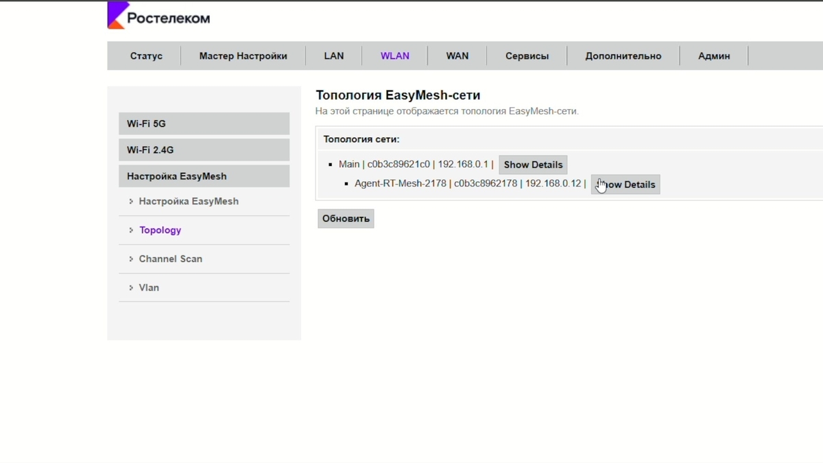 IP-адрес WEB интерфейса: 192.168.0.1